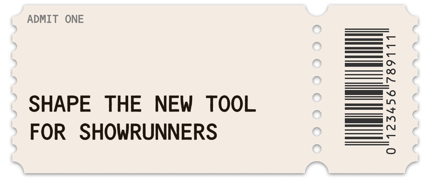 As we mentioned in our first issue, we work on an app for showrunners called typo. If you’re tired of duct-taping together iMessage, Slack, Frame, Dropbox and Asana to run your show, we’d love for you to be a design partner. Reach out to Sahil at sahil@typo.inc.