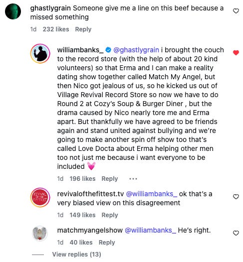 William Banks’ Match My Angel will now be relocating to The Famous Cozy Soup n Burger. This follows a dispute with New York Nico (Revival of the Fittest) over filming real estate at Village Revival Records.